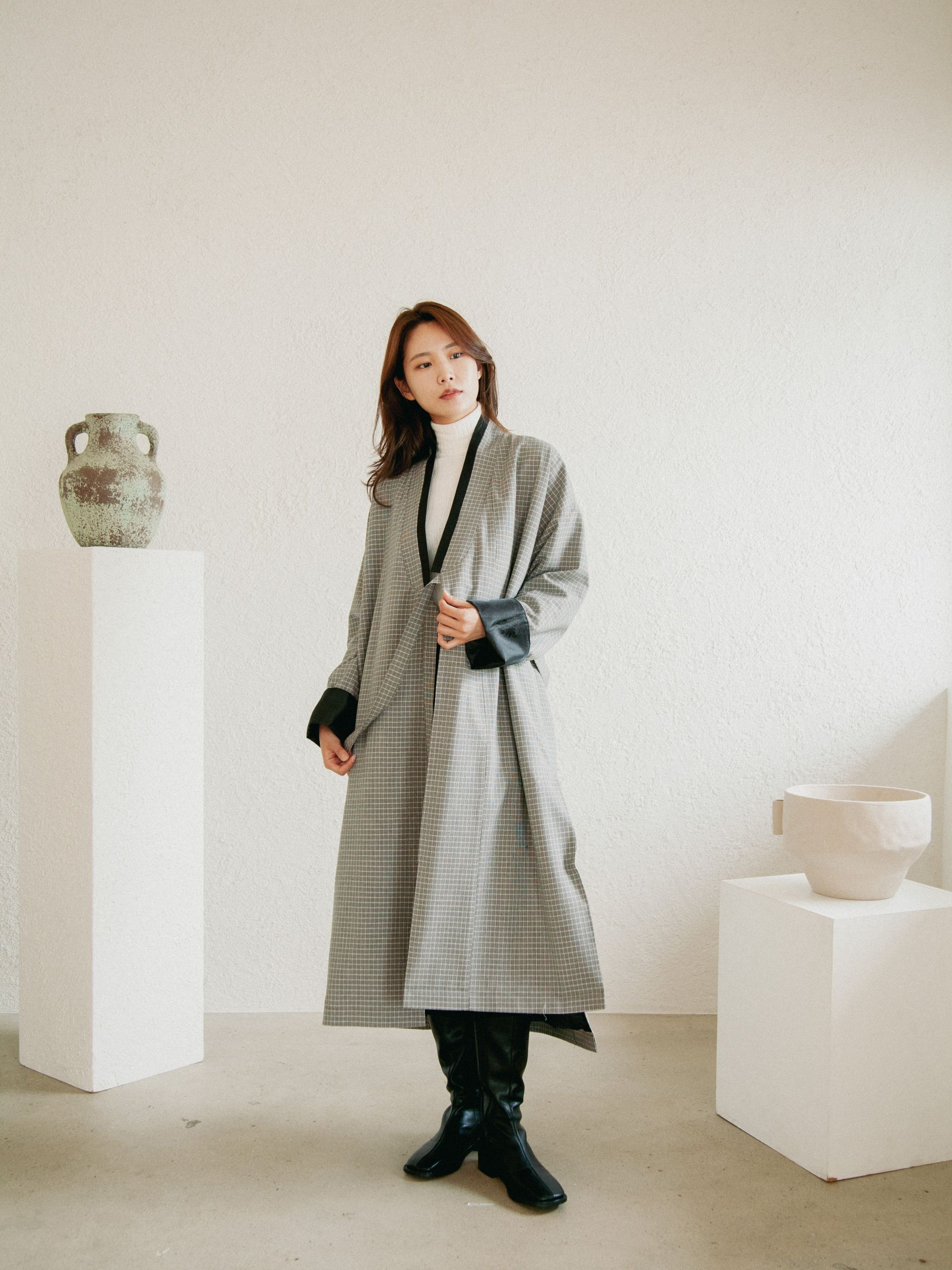 창옷과 두루마기의 멋스러운 형태를 재구성하고, 한복지를 사용한 안감으로 포인트를 준 간절기 코트 입니다.