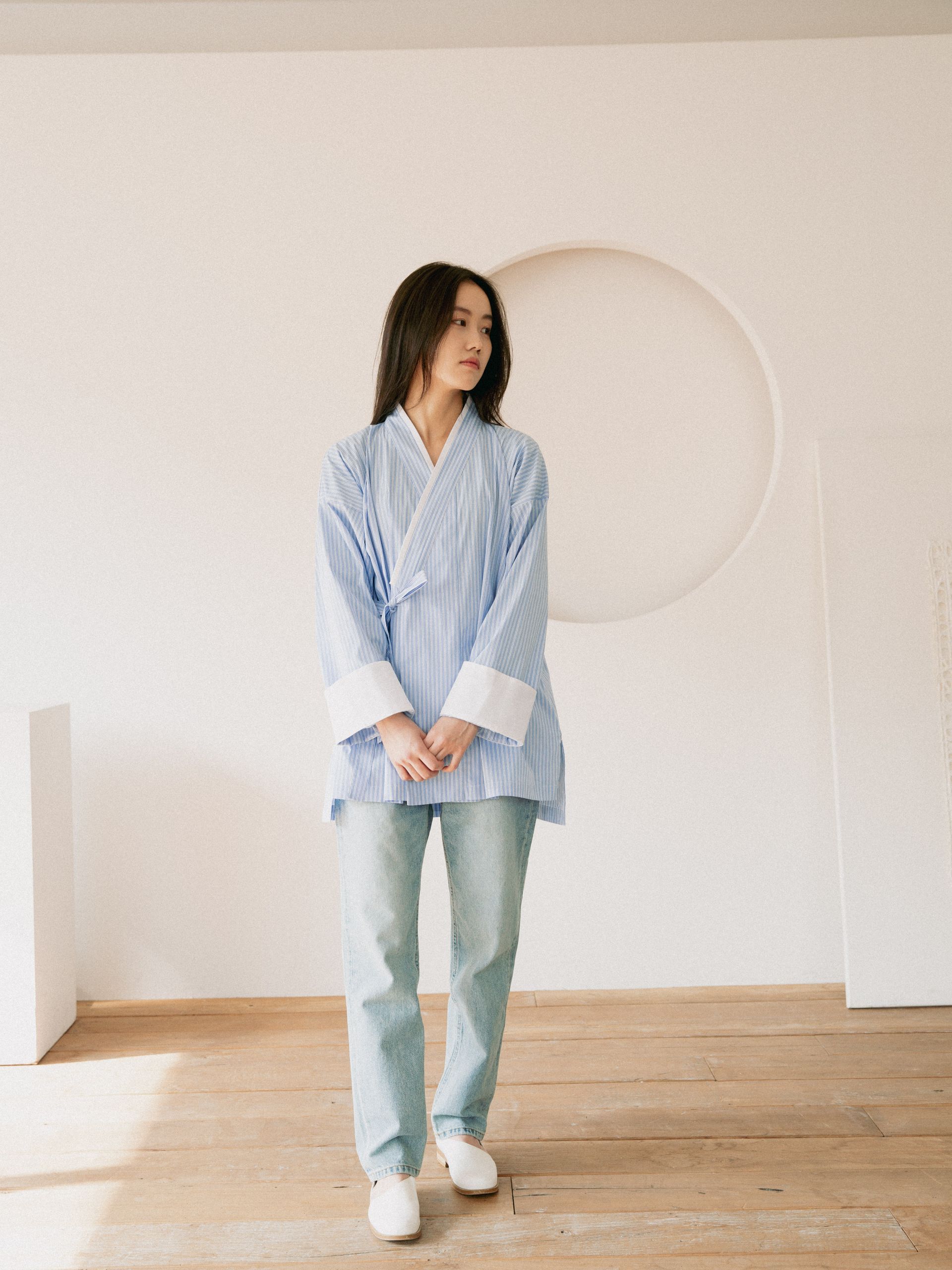 베이직한 형태로 활용도와 내구성에 초점을 둔 디자인입니다. 한복패션의 기본을 갖출 수 있는 아이템 입니다.
