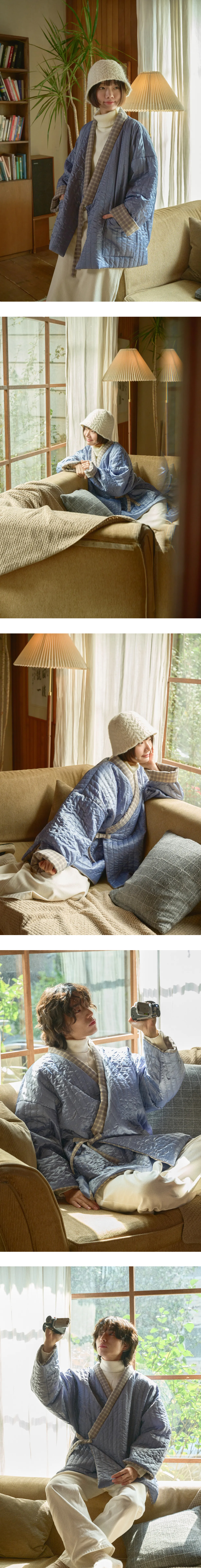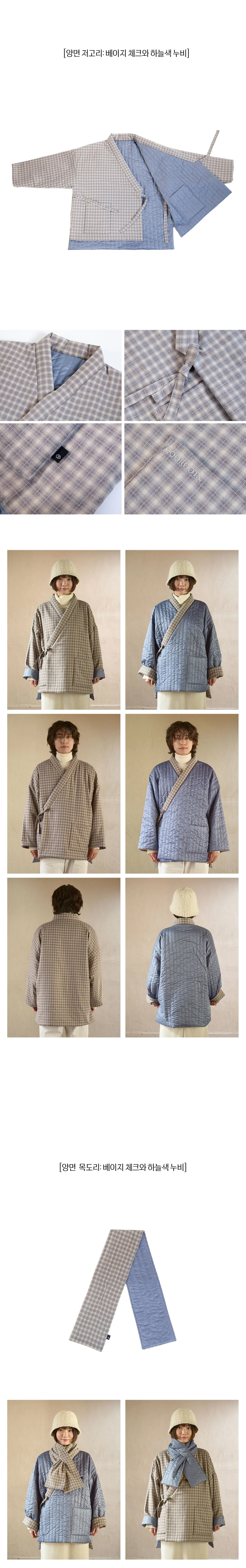 양면 누비저고리_베이지체크와 하늘색 누비