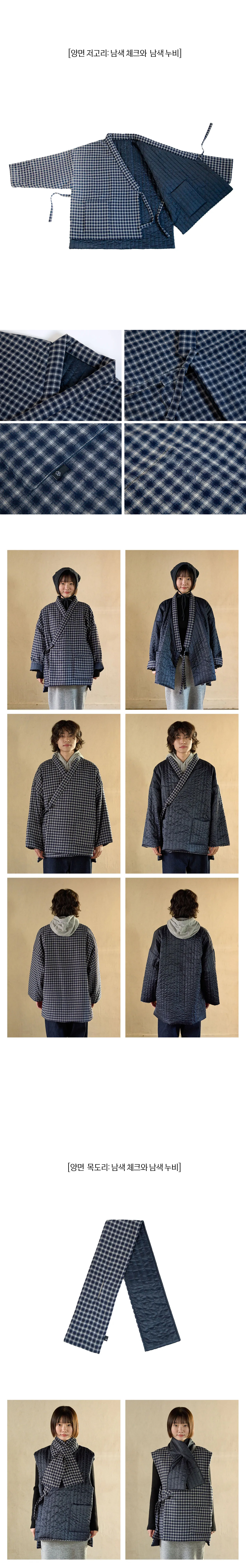 양면 누비저고리_네이비체크와 남색누비