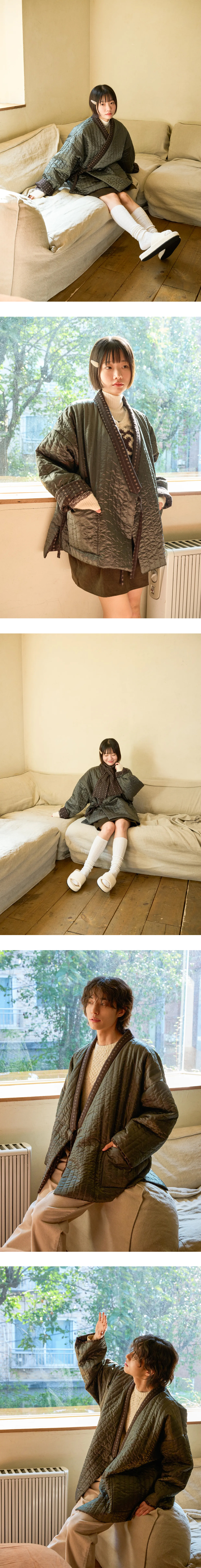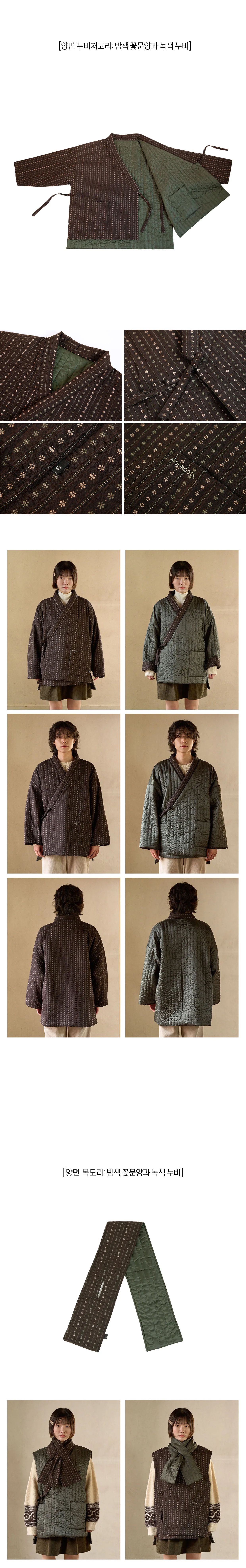 양면 누비저고리_밤색 꽃문양과 녹색 누비